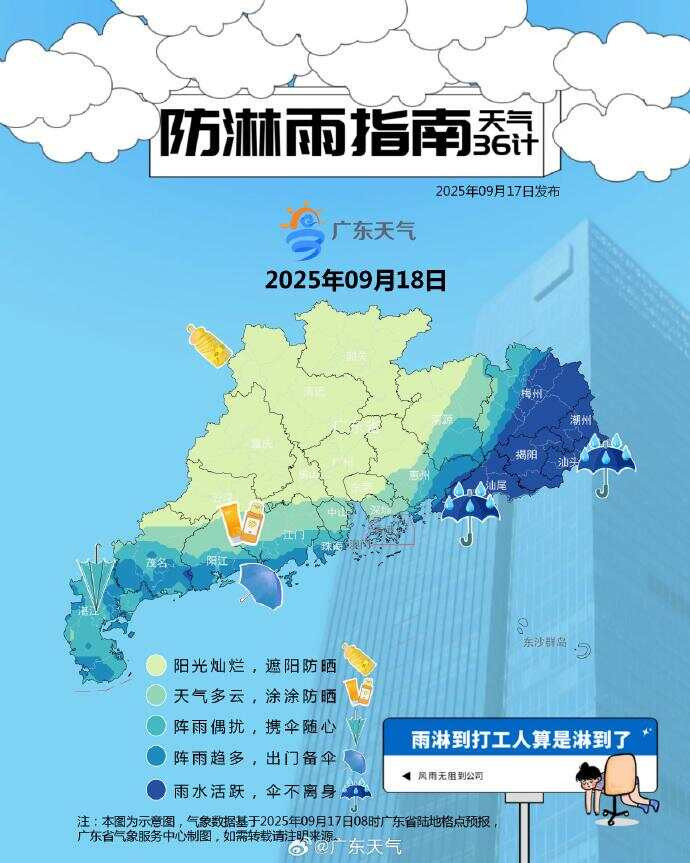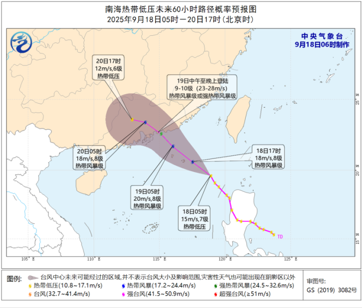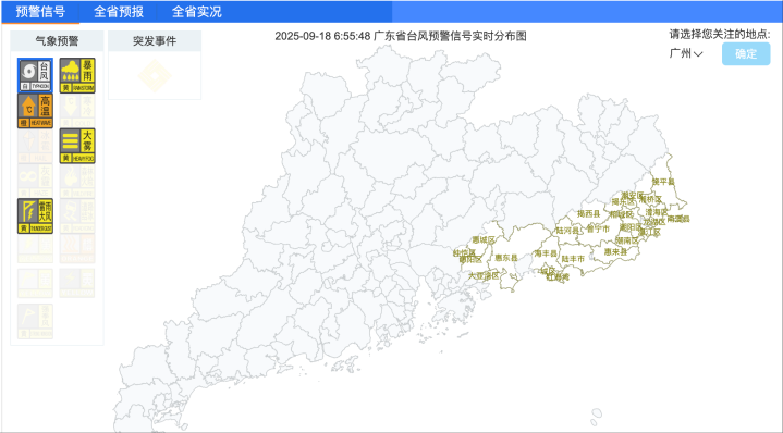昨天,广东多地已经陆续发布了台风预警信号。18日至19日,南海北部海面和广东中东部海面风力将自东向西加大至7~9级,阵风10~12级。19日至21日,广东中东部市县会有一次暴雨局部大暴雨或特大暴雨过程。