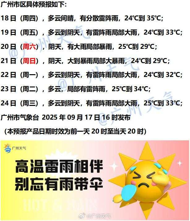 广州方面,受即将生成的17号台风邻近影响,广州今日主要受热带气旋外围下沉气流控制,天气系统总体较为稳定,以炎热伴雷雨天气为主,午后部分地区仍有雷阵雨。