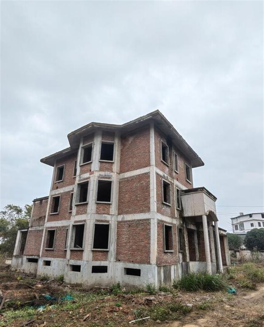 这栋别墅目前只是一个混凝土框架,外墙没有进行任何装修,门窗的位置还是空洞。 它属于在建工程,还没有办理不动产权证书。 买受人需要额外支付2万元的管理人报酬和3100元的测量费用,才能启动办证流程。 小区内部道路没有硬化,绿化工程停留在规划图纸上,正式的供水供电管网也没有接通。
